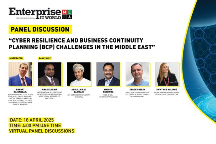 As part of the Enterprise IT World MEA storytelling and thought leadership series, a virtual panel discussion on "Cyber Resilience and Business Continuity Planning (BCP) Challenges in the Middle East" was successfully held on 18 April 2025 at 4:00 PM UAE Time. The session brought together some of the region’s foremost cybersecurity experts to delve into pressing concerns such as AI-driven threats, regulatory compliance, supply chain vulnerabilities, and fostering a culture of cyber resilience. The event was widely promoted across all major social media platforms, drawing strong participation from cybersecurity professionals and industry leaders across the Middle East.